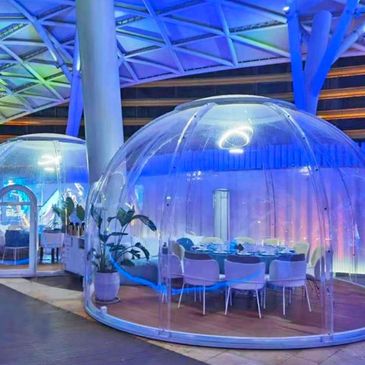 Restaurant Dining: By utilizing the Glamping Domes as restaurant seating, establishments can offer their guests a unique and enchanting dining experience. Shielded from bugs, wind, or rain, diners can savor their meals in a charming ambiance with unobstructed views of the surrounding landscape, whether it's a picturesque countryside, snow-capped mountains, or a lush garden.