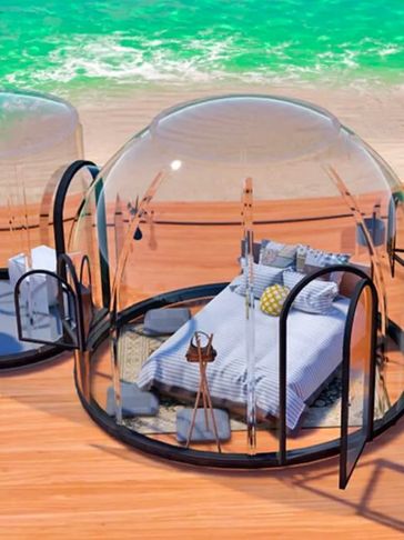 Luxury Glamping Domes: The Glamping Domes create an exquisite and unforgettable glamping experience. Guests can sleep inside the transparent bubble and immerse themselves in stargazing or breathtaking views, all while enjoying the comforts of a secure and cozy shelter.
